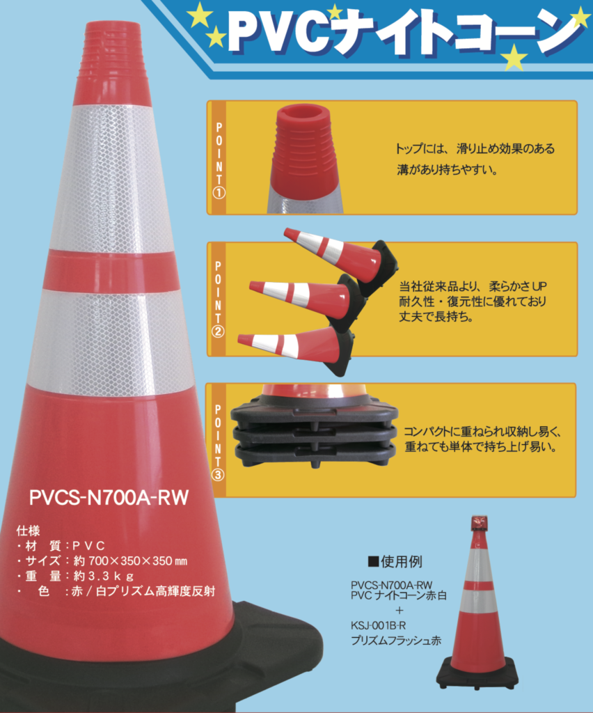 現場の安全を「消耗品」で終わらせない。このPVCナイトコーンは、作業者の安心感と、企業の安全管理コストの削減を同時に叶える賢い選択です。